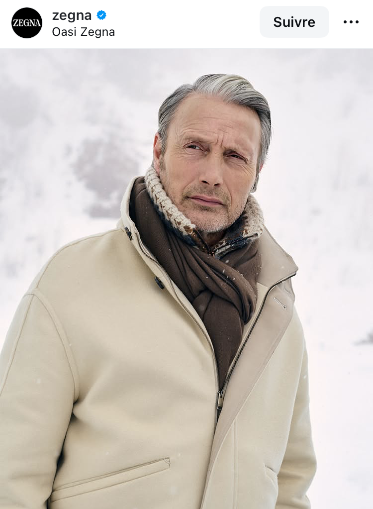 Мадс рекламира кашмирени шалчета