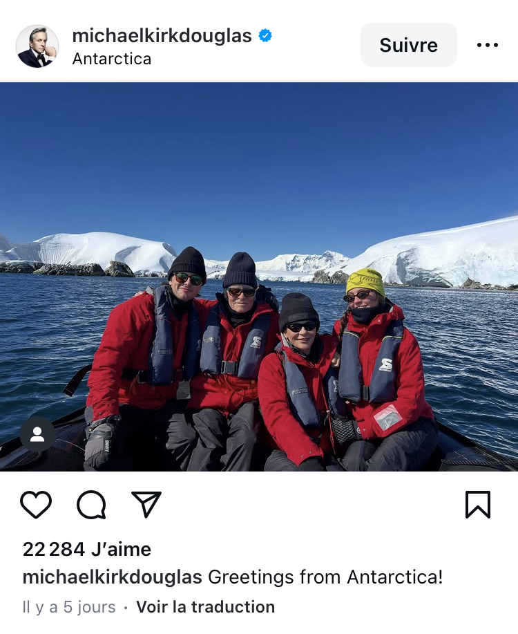 Майкъл Дъглас и с-во чаааааак в Антарктида отишли, далече от човешката (особено Холивудска) суета