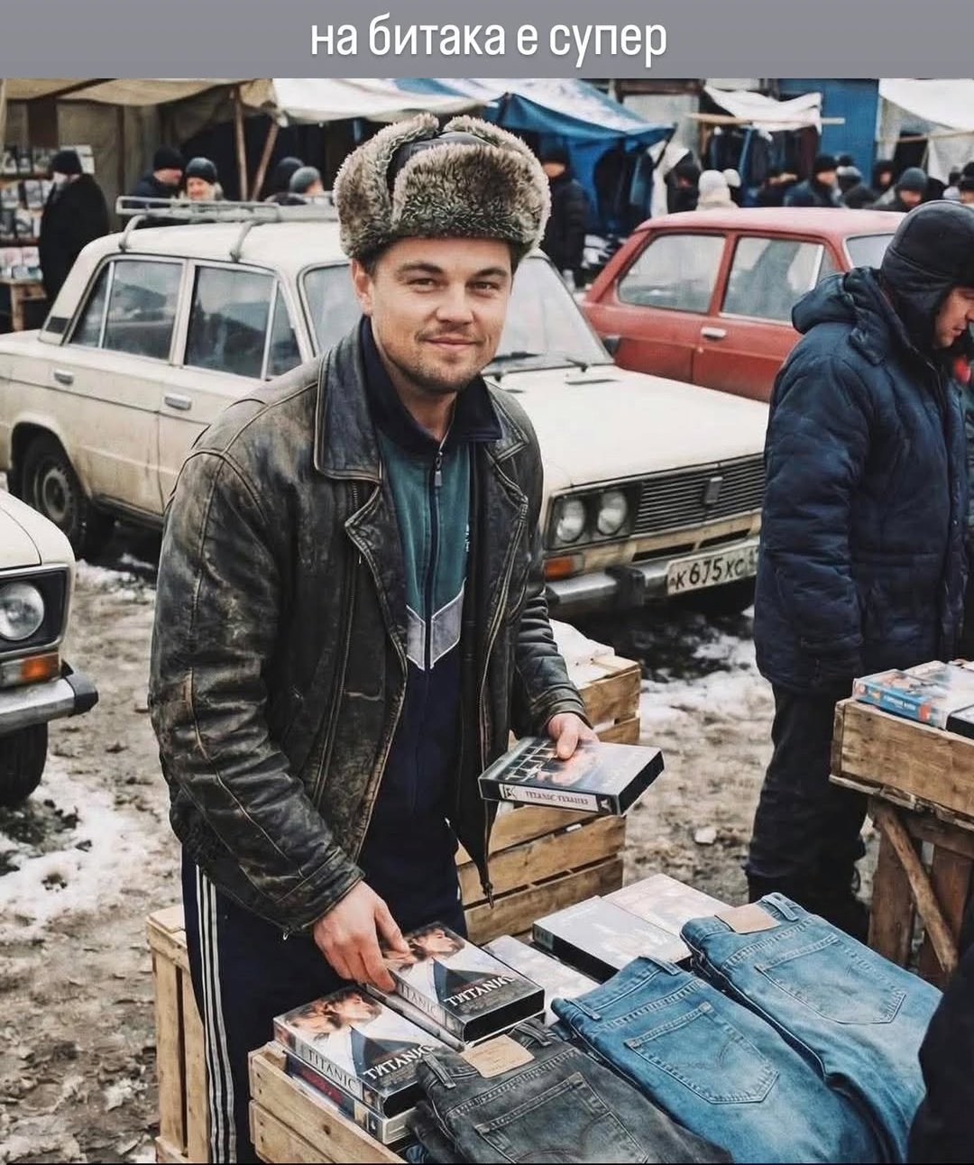 Лео на битака продава "Титаник" на видео-касетки (за майтап)