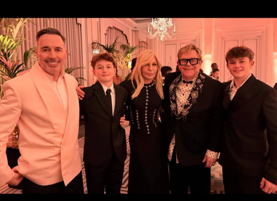 Елтън Джон с муж, синове и Донатела. Много са пораснали момчетата