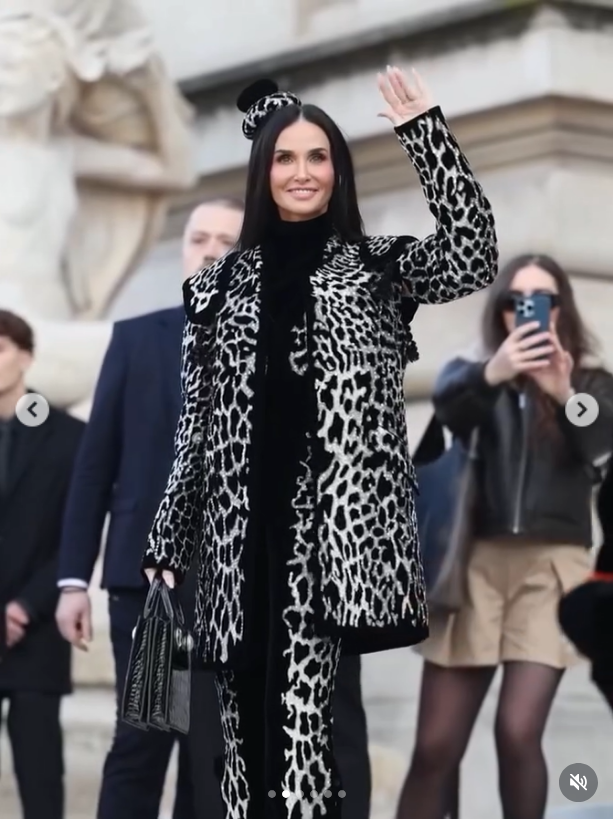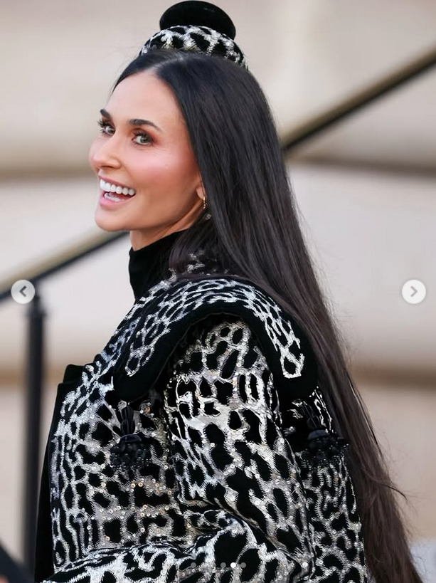 Деми Мур с тематичен тоалет "Агонията и екстазът"на Daniel Roseberry в Седмицата на модата в Париж..