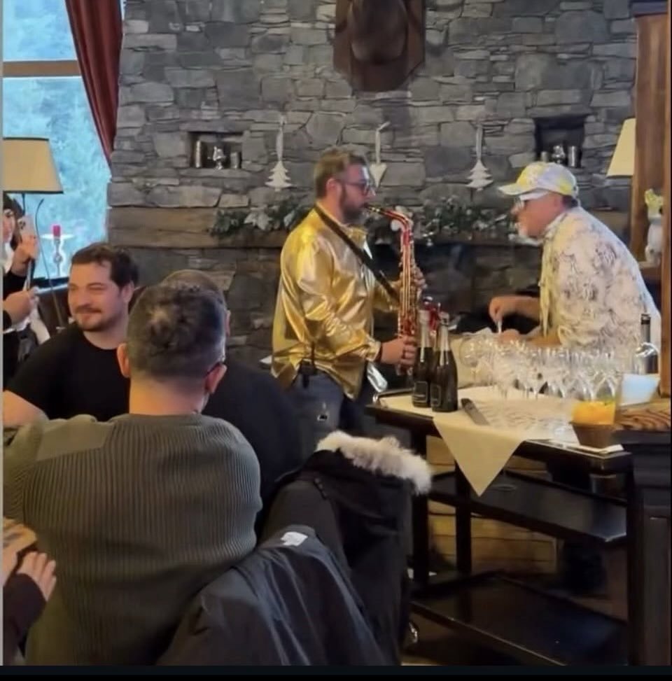 Качеството не е хубаво, но поне си личи че хората все пак са му уважили личното пространство. Все е сниман отдалеч.