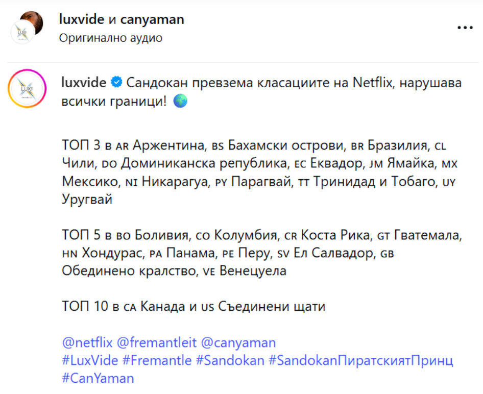 Фактът, че се задържа в глобалния Топ 10 вече толкова дни, е страхотно постижение! Не само успява да се задържи, но и успява да изпреварва и конкурира Netflix оригинали с пълно глобално покритие (пуснати в над 190 държави)....