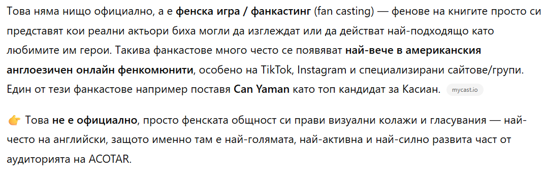 ✔ Американският fandom е много по-видим, активен и организиран онлайн — оттам идват тези визуални асоциации и „Касиан = Джан Яман“ фанкастове.