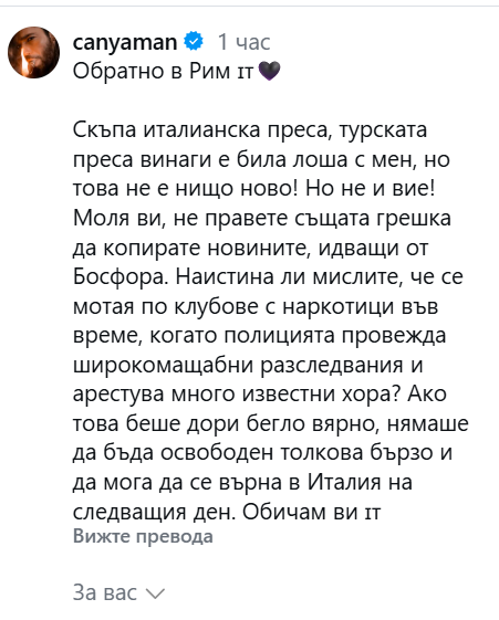 Джан е пуснал изявление в Инстаграм. Вече си е в Рим.🙂
