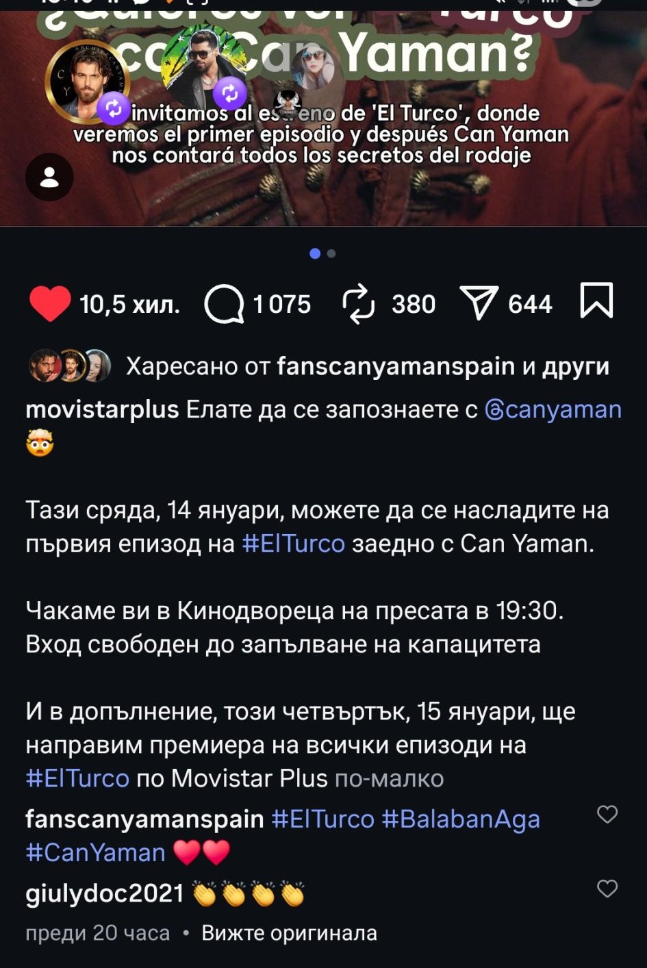 14 януари, промоция на сериала „Ел Турка“ в Испания;
