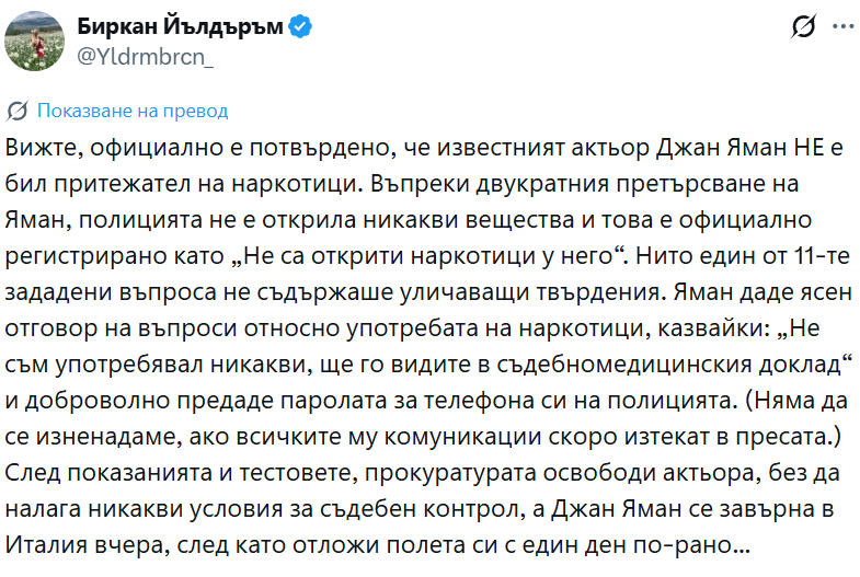 Неговият случай се вписва в по-широк контекст: през последните месеци множество известни личности, инфлуенсъри и предприемачи бяха обект на вниманието на турската съдебна система. Но Яман отхвърля всякаква сянка на съмнение и твърдо отстоява позицията си, отказвайки да бъде въвлечен в наратив, който не му принадлежи.