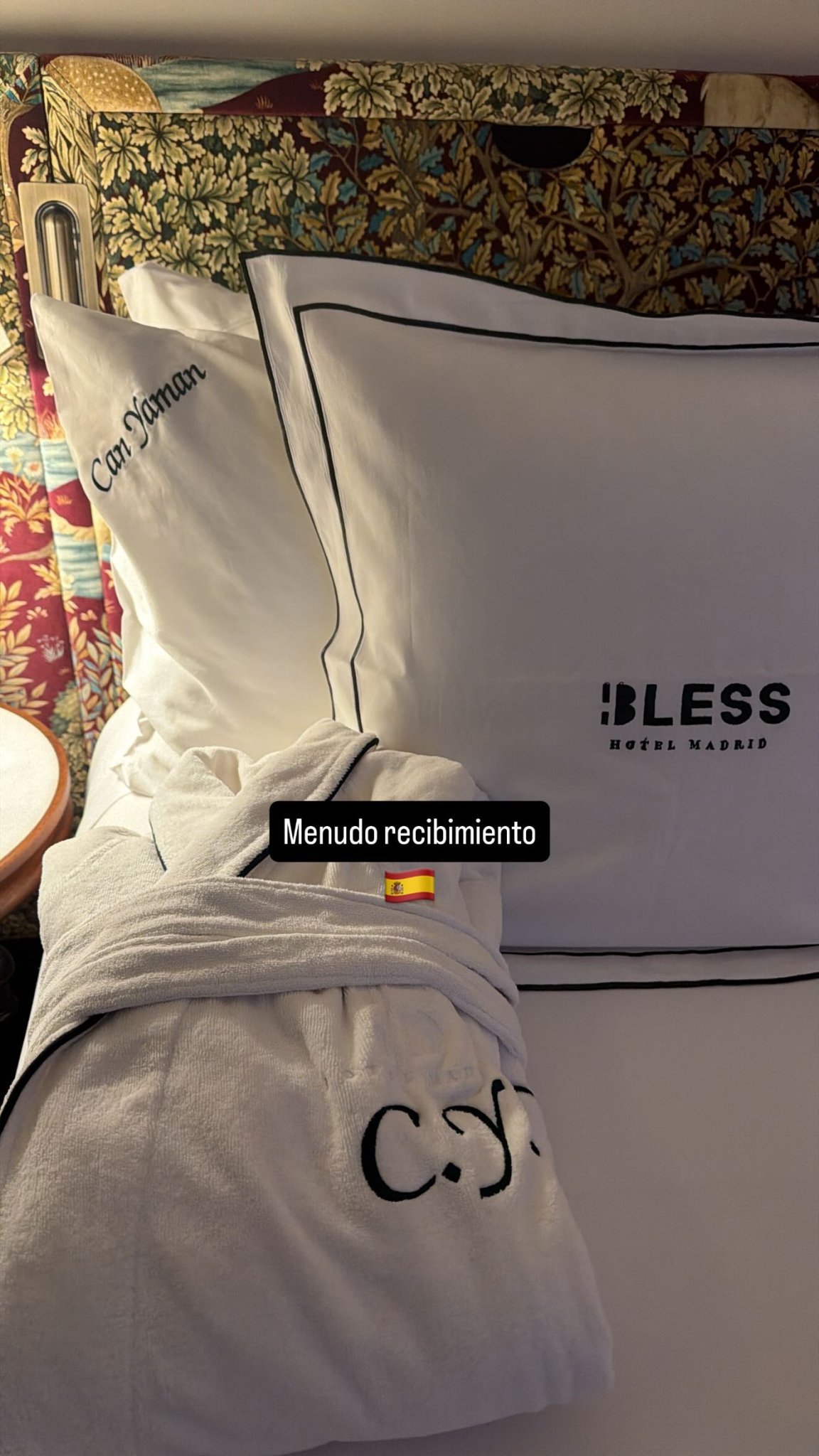Вече е в хотела, даже името и инициалите му са бродирали на възглавницата и халата....