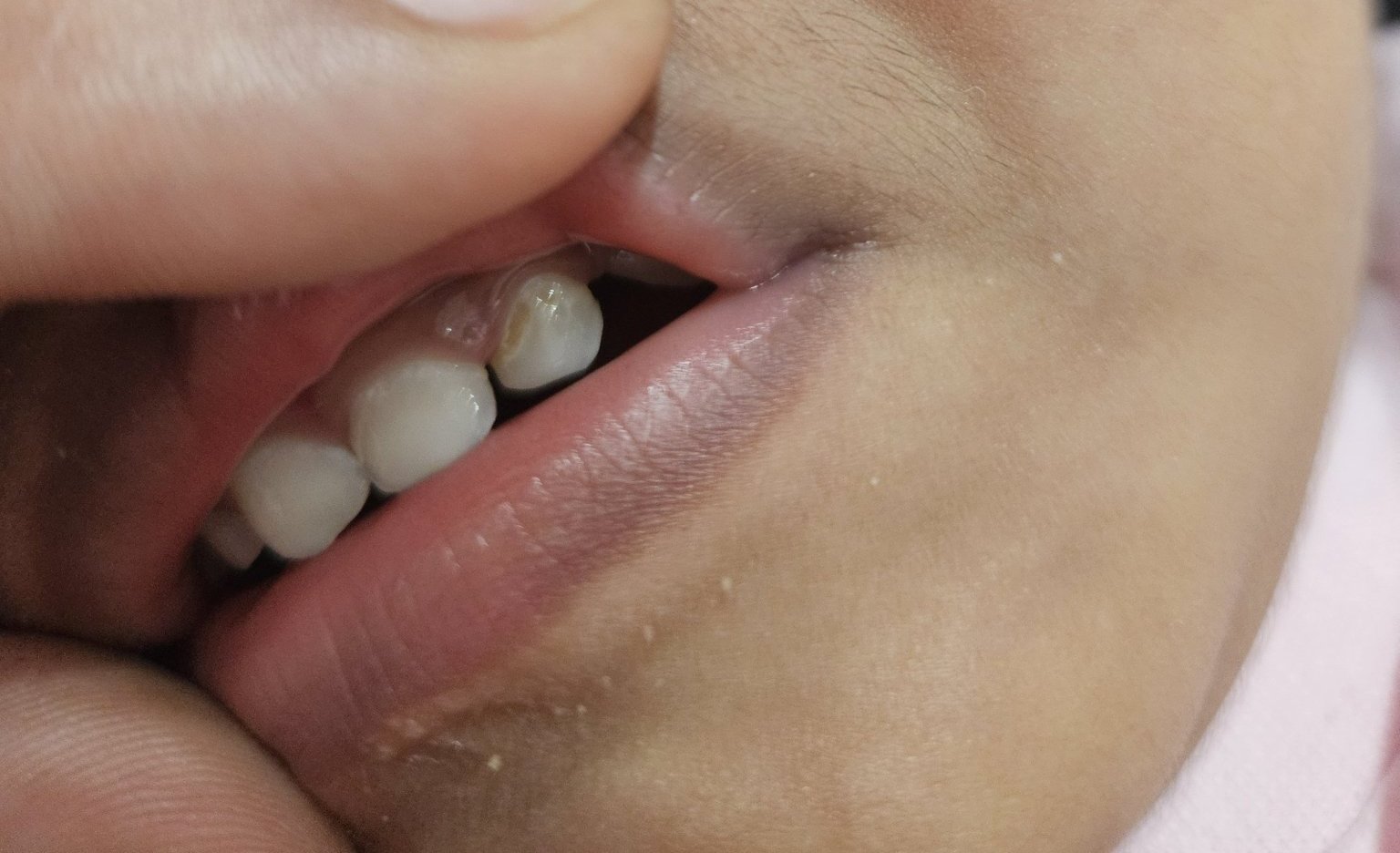 Моята дъщеря получи кариеси на предните зъби на 1,1 г. Заведох я на зъболекар. Стоматоложката направи лека интервенция (маза я със сребърен (нещо си). Не използва машина.