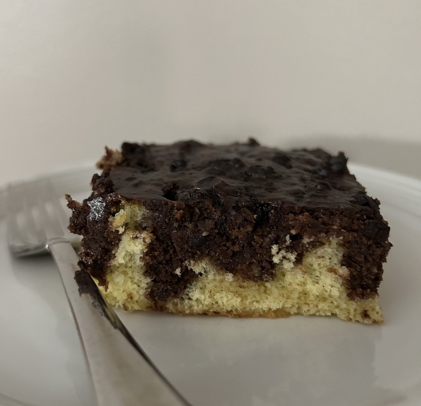 Объркваме продуктите (не е нужен миксер) до разтопяването на захарта. Печем на 180-200ºС до суха клечка. Като изстине заливаме с: