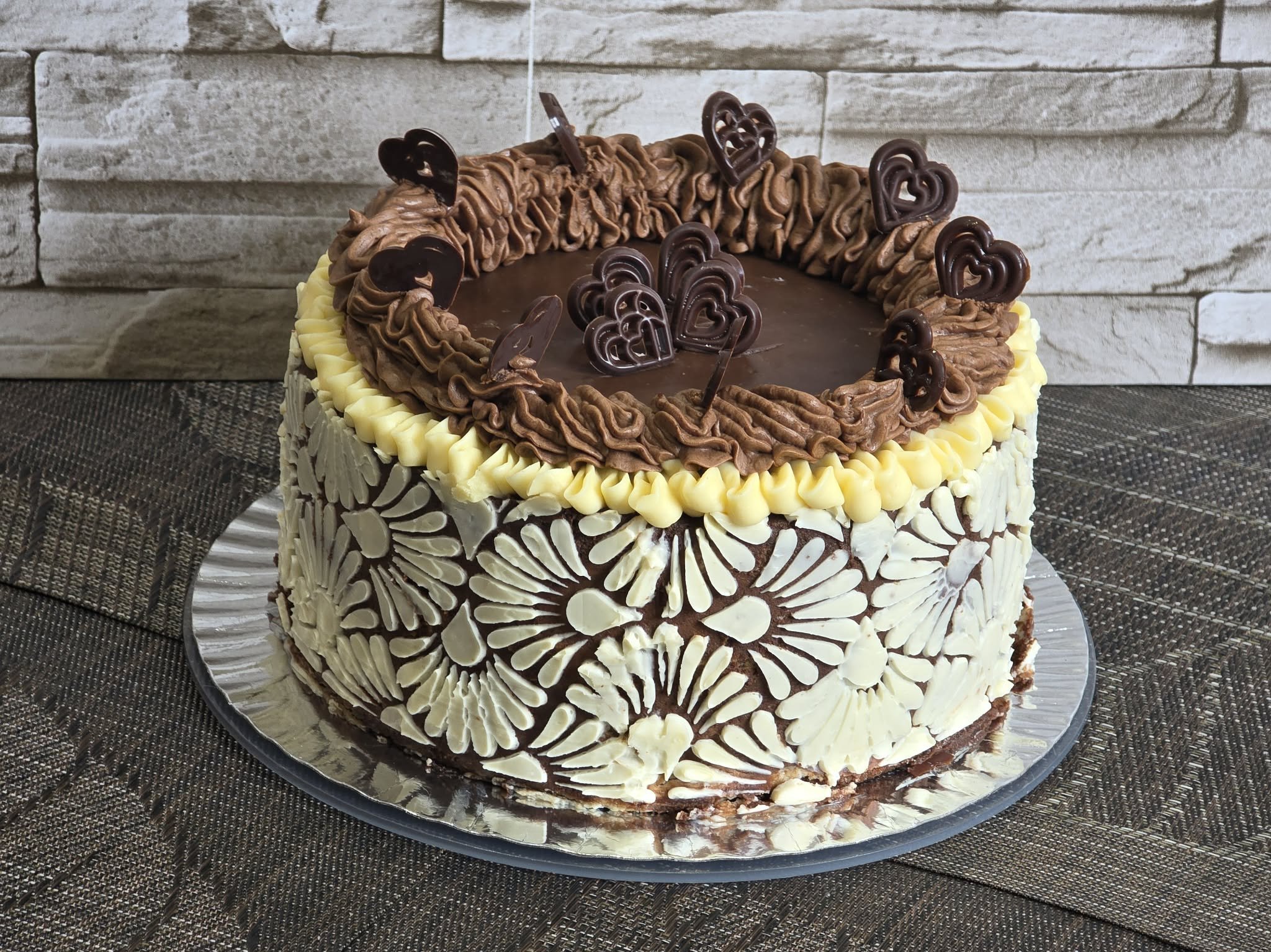 Благодаря, Биляна! Не, не ползвам ацетатна лента. Ако имаш предвид украсата - ползвах шаблон, а измазването беше с шоколад+маслен крем. Още работа ми трябва, че да стане точно както го искам.