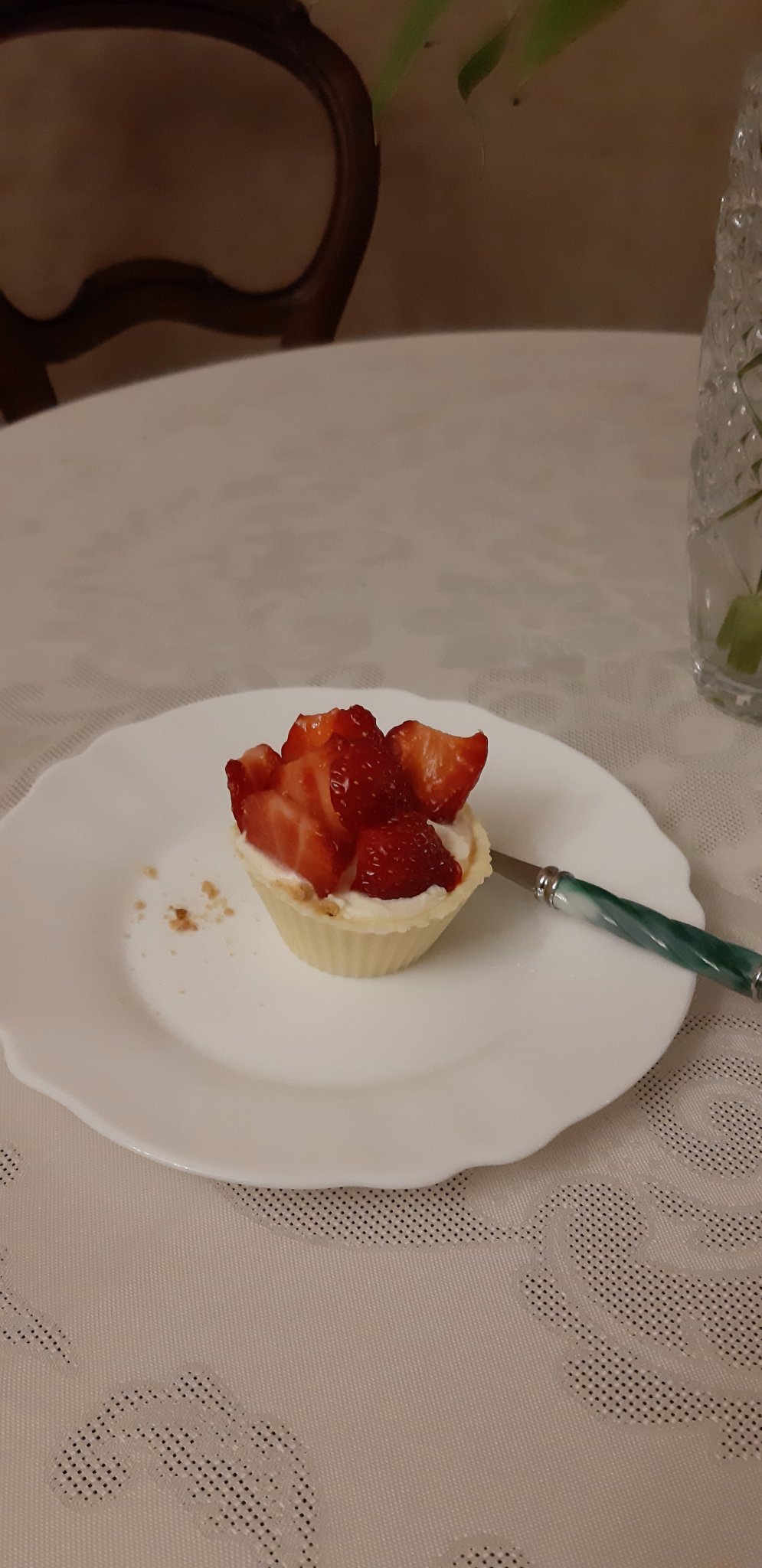 Пълнежът е от кръгче пандишпанов блат, изрязан по размера на дъното на кошничката, леко сиропиран с мляко, кремът - от маскарпоне, пудра захар и много малко заквасена сметана, за да не се разводнява, в някои сложих едро смлени орехови ядки, отгоре - ягоди - нищо сложно, но бяха вкусни и сравнително ефектни. Тъмния шоколад полагах на два плътни слоя с четка, белия - на три слоя, че ми се видя по-рисков.