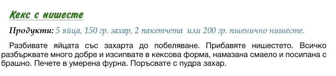 Прелиствам си с кеф книгата и попадам на този кекс с нишесте. Де факто пандишпан само че вместо брашно изцяло нишесте. Учудих се, че няма нито набухвател, нито мазнина, сигурно ще стане сухичък? Изкушава ме да пробвам за експеримента😁