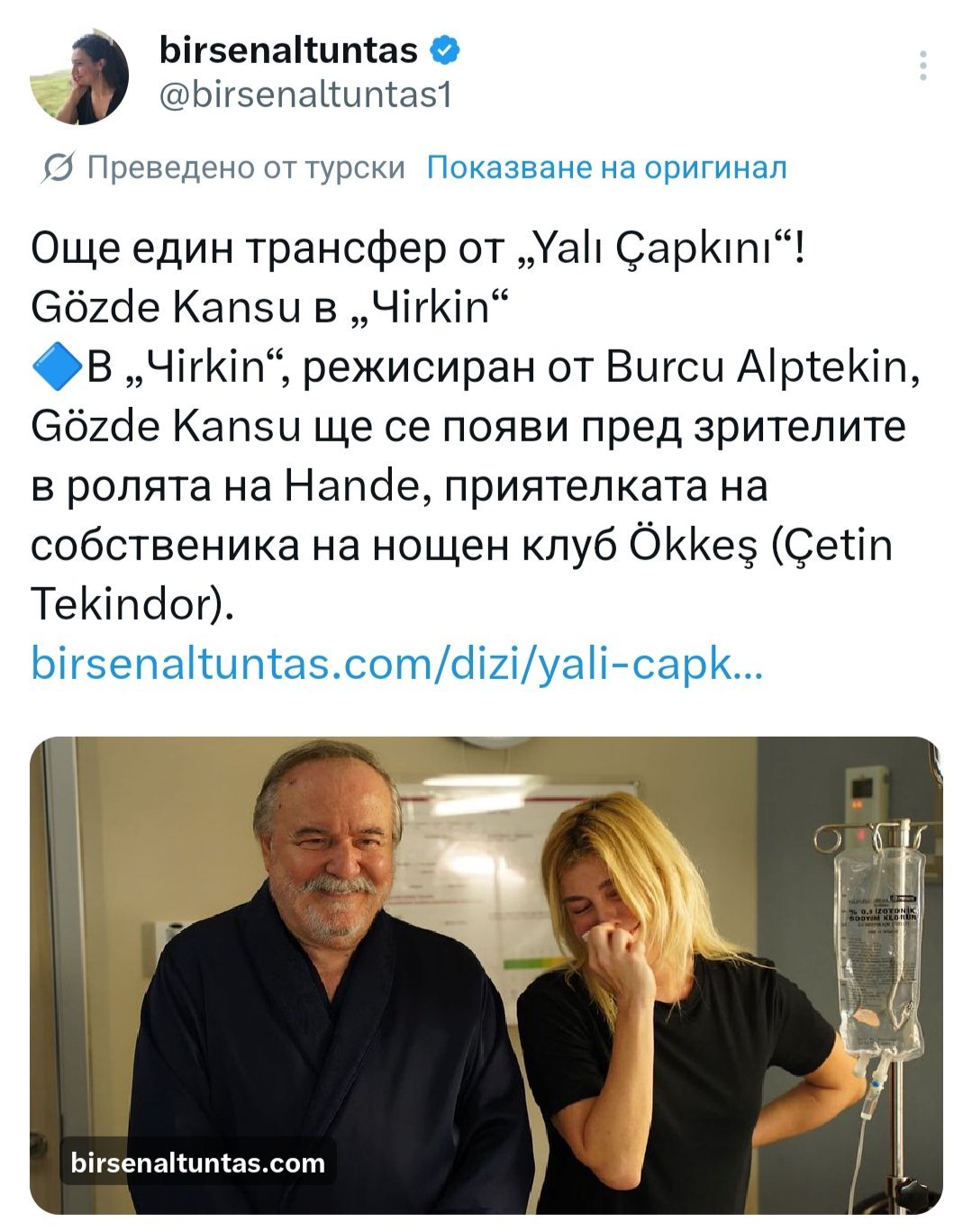 Мислех, че Четин Текиндор няма да участва вече в сериали, заради здравословни проблеми. Ама новините са добри, радвам се за Гьозде също.
