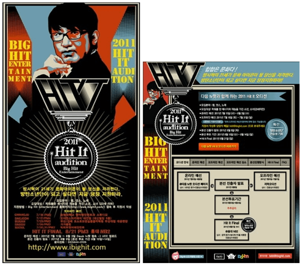 Преди да открие вторите Hit It Auditions, Big Hit проведе частни прослушвания и набра редица стажанти от различни източници. Jungkook се яви на прослушване за популярното предаване на MNet „Superstar K” и въпреки че не беше избран да участва в шоуто, след това беше открит от седем различни агенции (съдейки по визитките в специалното издание Love Yourself: Her, сред агенциите беше дори JYP, така че той наистина имаше труден избор).