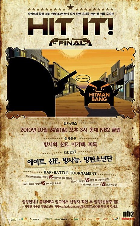 Финалът на Hit It се проведе на 24 октомври в NB2 в Хонгде. Форматът беше рап битка и според плаката Yoongi и Ikje бяха поставени един срещу друг и се изправиха един срещу друг във финалния кръг. 8eight (смесена група, съставена от Lee Hyun, Joo Hee и Baek Chan), San E и Bangtan (по това време 3 членове с добавения Supreme Boi) бяха там, а Bangtan излязоха на сцената след това.