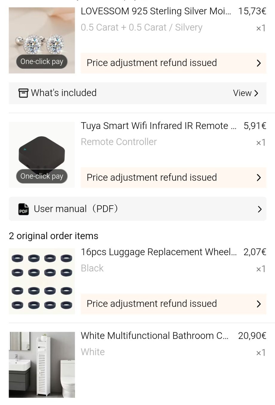 Аз чакам обеци, гумички за колелцата на куфар, инфраред устройство за връзка с климатика и шкаф за тоалетната.