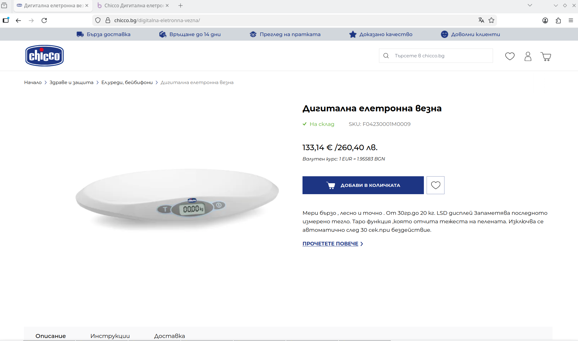 Първи пример от мен: Дигитална елетронна везна за бебета Chicco