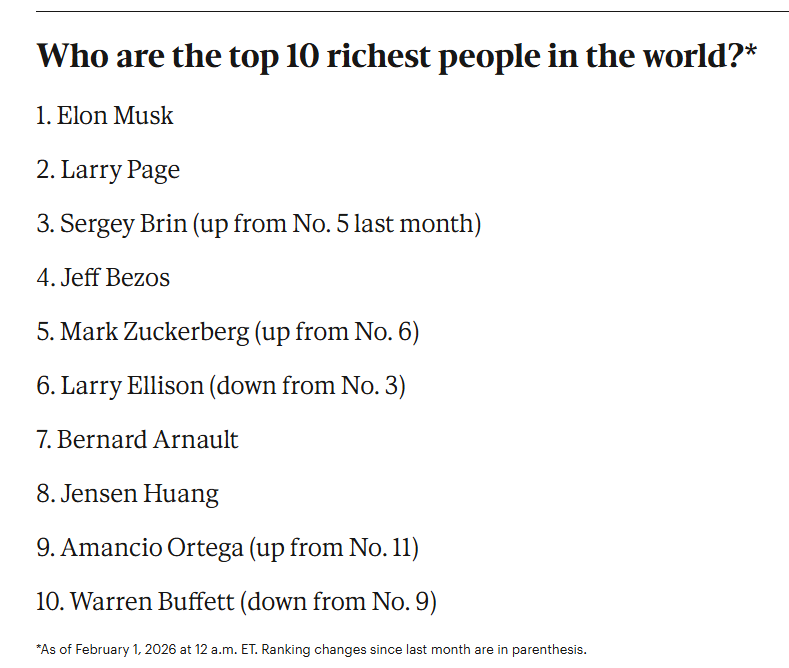 Според списъка на  Forbes за февруари най-богатите хора в света: