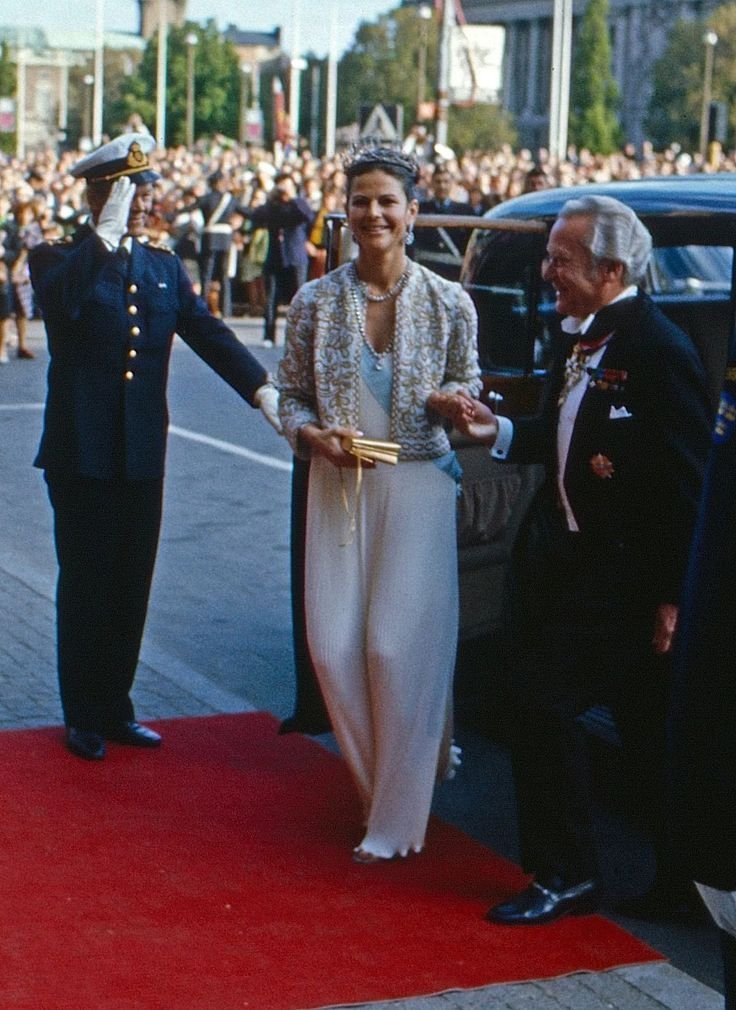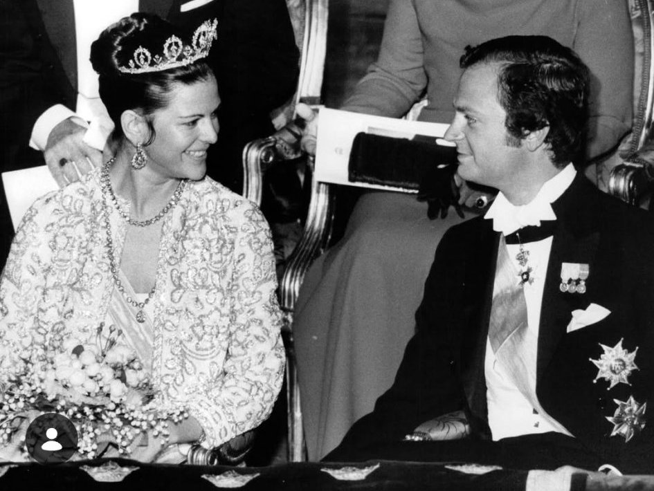 Кралят и тогавашната г-ца Силвия Зоммерлат в Кралската опера вечерта преди кралската сватба през 1976 г.