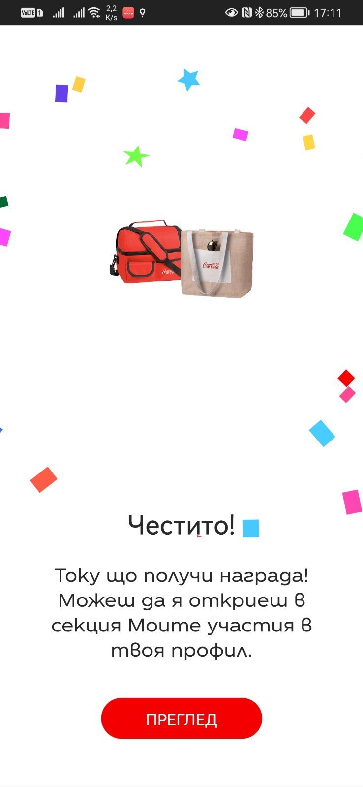 И моя шоколад дойде . Имам проблеми с PG и регистрацията на една бележка , на нея има Always  и Памперс и не желаят да я признаят"регистрацията е била отхвърлена поради използване на един и същ банков акаунт при повече от едно участие, което не отговаря на условията на кампанията." С 3 различни бележки , на 2 различни акаунта . Чакам отговор къде в правилата пише , че трябва да са платени от различни хора продуктите.
