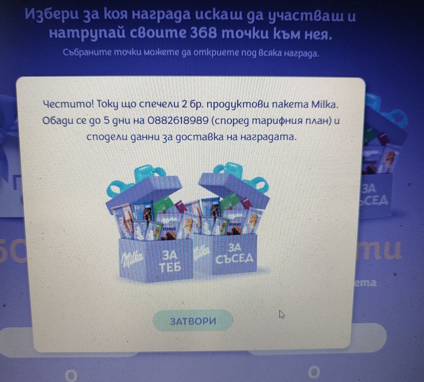 Току-що получих шоколадите Милка с Европът, доста са бързи, смс-а ми, че печеля е от снощи 18,45 ч.