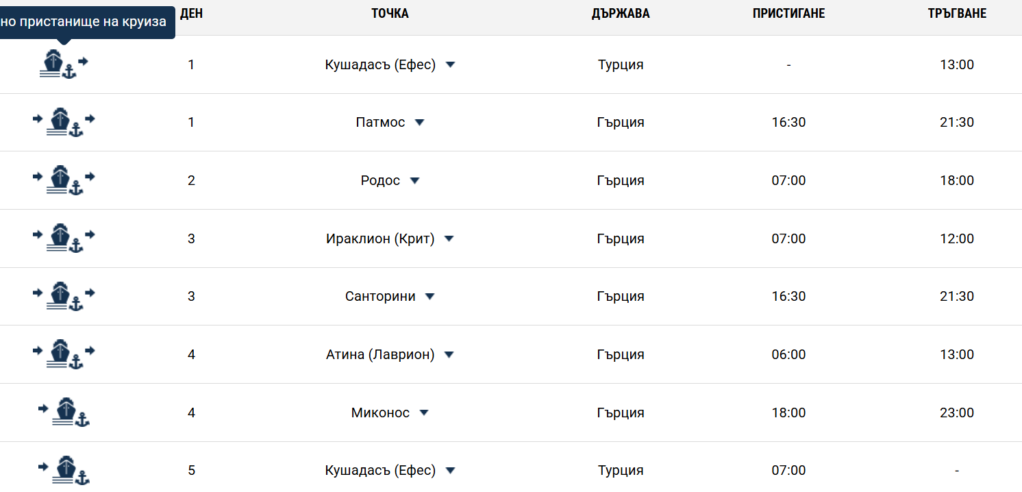 има такива предложения, в които едно спиране е за 4-5 часа, примерно в Санторини,