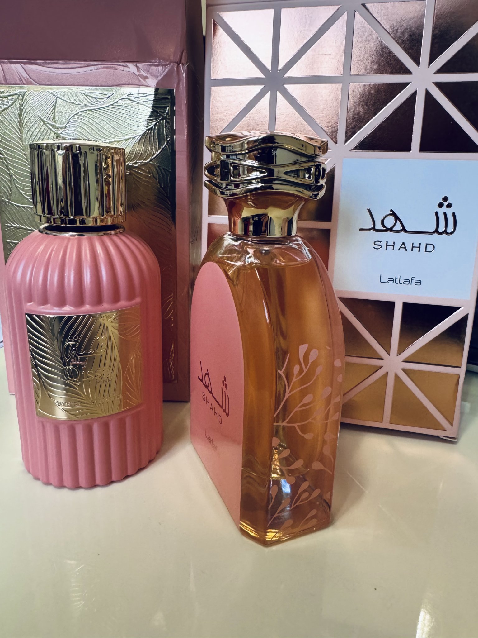 Shahd Lattafa- както го описват: иланг иланг с франджипани,много муск и ванилия.Много летен,морски и чист.Лятото ще си го ползвам с голям кеф. Наистина има общо с Narciso Eau de Parfum Ambrée,но е много по лек и кремав от Нарцисото. От семейството  на The Chant Maison Alhambra, който също много обичам да нося лятото.