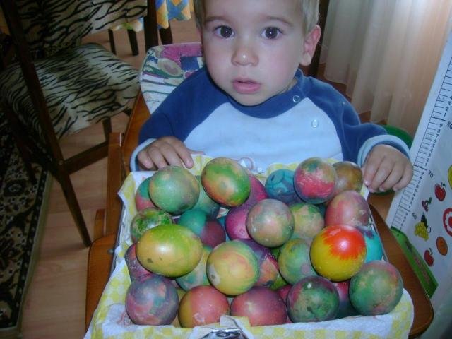 Пепи,сутринта ходих до магазина за боя за яйца и ми беше хладно,но сега гледам,че е по-приемливо за излизане...Ще изчакам и Данчето да си оправи яйцата и може да отидем някъде по махалата на разходка с децата...Вижте моите яйца,които дста набързо направих,че незнаех Тошко кога ще стане.