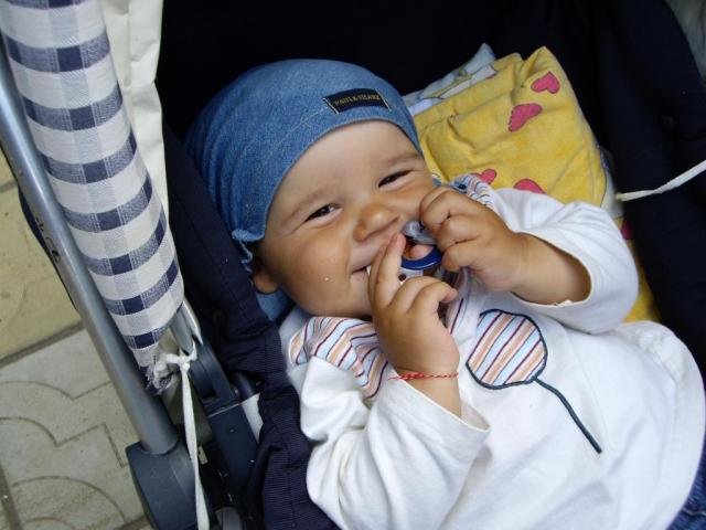 Ходи за една ръчичка, но много го е страх да се пусне. Заковава се и не смее. Иначе съм го пробвала само да го държа за блузката леко, но усети ли се, веднага спира и иска да ме хване. Бели прави доста и е голям инат. Проявява характер (точно като мен и баща му