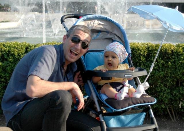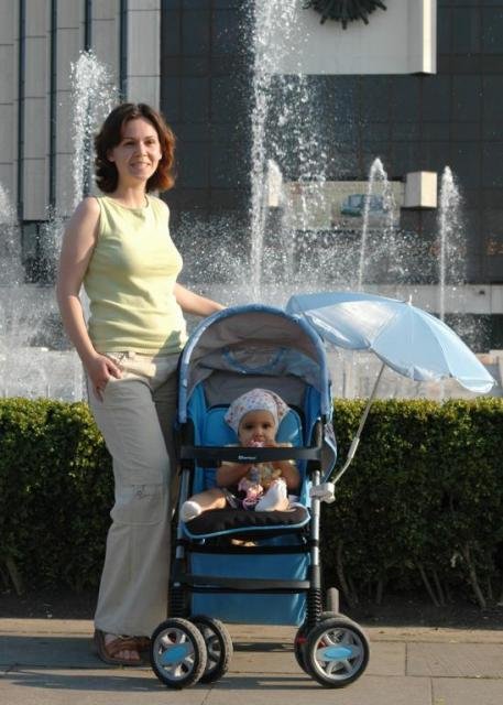 Вчера си направихме една чудна семейна разходка през НДК. Ени много се кефи в новата количка, а най-много хареса фонтаните и гълъбите. Ето и малко снимки от нас: