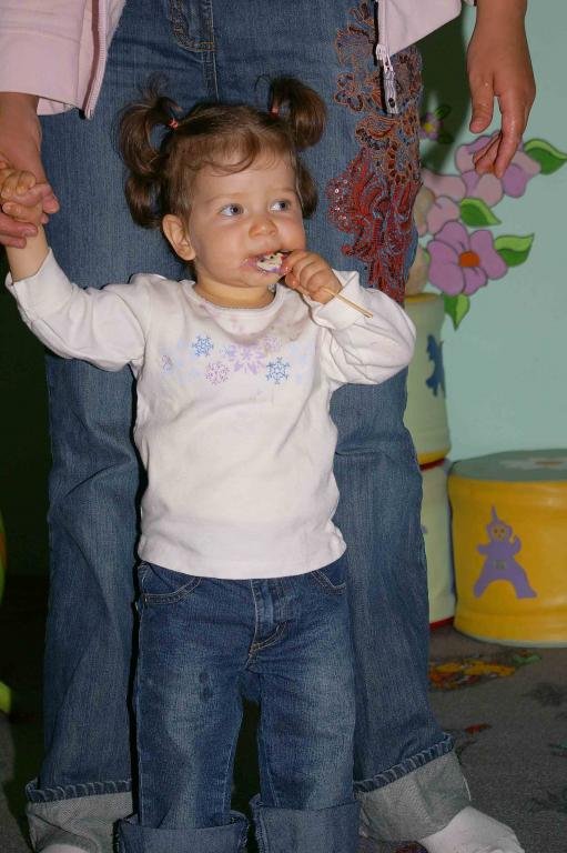 Сега сме само на чай и вода без моркови,тикви,чушки,домат,картоф.Вече се сресира като види сестрите макар и да са любезни с нас/имаме позната там/и само се гушка в мен,инъче пък е жизнен и си играе.