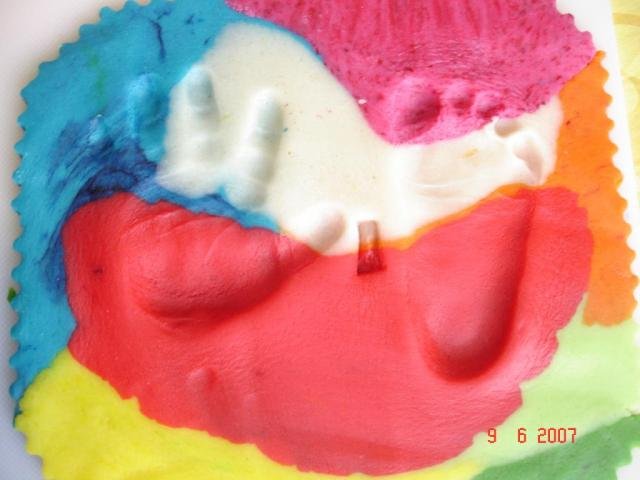 , понеже това е един вид захарно тесто и трае много дълго време освен всичко друго стяга и става като твърда плочка без проблем. Оцветява се много лесно с каквито цветове искаш (сладкарски бои, ако е за ядене и боички за яйца ако е за отпечатък) и въобще с него се работи като с пластелин