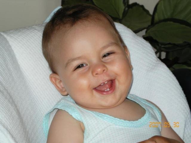 Тити още не иска да се пусне от ръката ми и да върви сам въпреки че изобщо не се опира не нея! Думичките ни са мама - напъкно съзнателно, баба - постоянно с повод и без повод, па- когато нещо падне, бау-бау - когато види котока или куче, тата - съзнателно и някакво бърборене от м-та и н-та. Пълзи доста активно и плува с пояс!