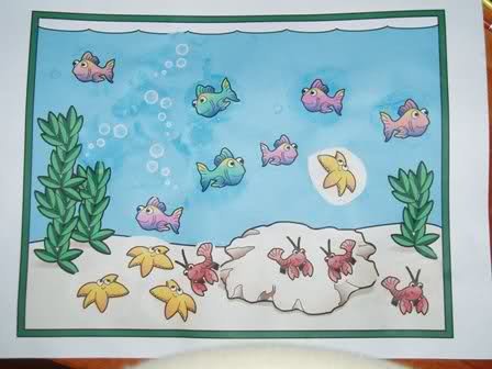 Това е от готов темплейт от един сайт. Рибките, рачетата, мехурчетата и морските звезди са налепени отделно върху фон пясък и вода.