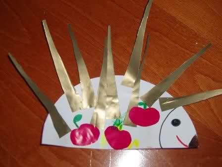 Тази риба е "сглобена" от картонена чинийка подобно на заешката маска. Дара я оцвети сама с водни бои.