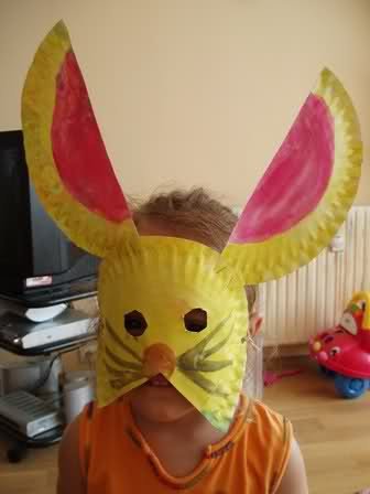 Ние тази седмица правихме маска зайче от хартиени чинийки.