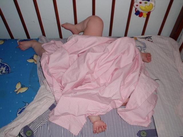 Заспиването - напоследък и Гери след като я накърмя ако не е заспала на гърдата започва едно обикаляне из леглото, едно чудо.. или пък се хваща за решетката, подава си главата и като фиксита някой започва един хилеж... голяма скица.