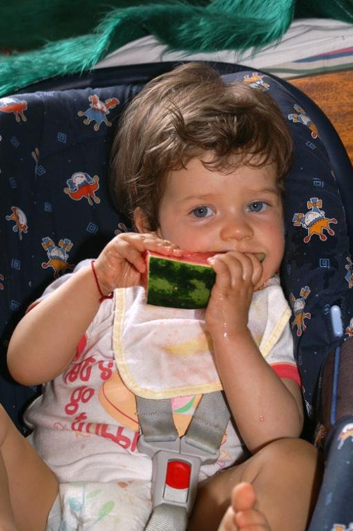 За храненето: Иванна вече яде всичко и режима е много относително нещо при нас. Зависи от ставането сутрин яде сандвич, мекица, пица на парче и други такива. За обяд манджа каквато е сготвена и за нас. Като събуди кисело мляко с бисквита, плодово пюре с бисквита, каша в бурканче, кисел и т.н. За вечеря супа или каквото има сготвено. Задължително яде зеленчици и плодове по време на ядене.