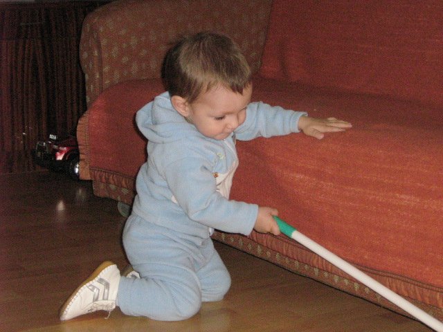Любимете и играчки са една голяма кола,която все тика нанякъде и сяда върху нея да си почива,едно детско столче,което качва и по леглата и се катери и по шкафовете ,та като ми писне и го отнемам  Grinning ,от тези колелца с дръжка,бебешките,бях го прибрала,та сега като и го дадох и се видя много интересно   Laughing и днес и дадох дървения метър на тати,та си го сгъва на фигурки.
