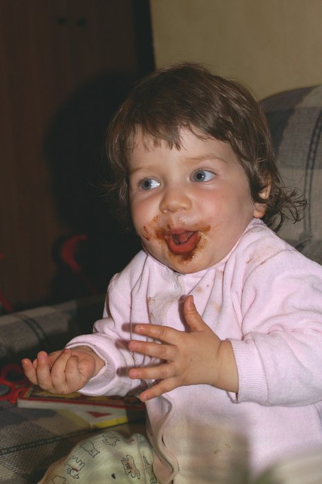 . Иначе е много игрива и само бели прави, а книжките ги обожава. Разглежда ги много и си говори нещо сякаш ги чете