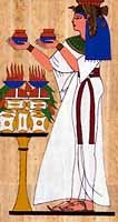 Когато кралски особи, богове и богини са били изобразявани в статуи, резби в храмовете и стенни картини, била представяна красотата и самоувереността на обекта. Египетските художествени общности идеализирали пропорциите на тялото. Мъжете са били показвани с широки рамене, стройни тела и мускулести ръце и крака, а жените са имали тънки талии, плоски кореми и закръглени бюстове. И двата пола са носели елегантни облекла и бижута и са стояли изправени с високо вдигнати глави. Тяхната внушителна външност внушава респект на всички, които наблюдават портретите им. В Старото Кралство, богините и жените от елита били представяни носещи тесни бели рокли с широки "яки" на раменете. В Новото Кралство те са носели тесни рокли декорирани със златна нишка и разноцветни бродерии и дреха наподобяваща сари. Тези дрехи са били ушити от лен и декорирани с красиви цветни десени и бродерии. По време на управлението на Аменхотеп ІІІ /1390 – 1352 г.п.н.е./ женското облекло е било изработвано от много лек, почти прозрачен лен.