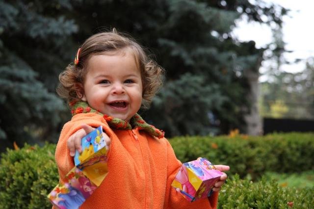 Вчера една приятелка на мама-германка-донесе на Дари няколко дрешки и зимно яке и много им се радвахме. Предимно аз де. И докато въздишах и ги сгъвах Дарито донесе от кухнята чаената чаша на баща си, погледна ме сладко и я хвърли на земята! Въпреки, че падна на мокета чашата се счупи. Днес пък ми скъса обложката на книгата, която чета ooooh! Това обаче са бели кахъри в сравнение с новият й любим спорт-качена на раклата се обръща и се хвърля така, че да падне по гръб!