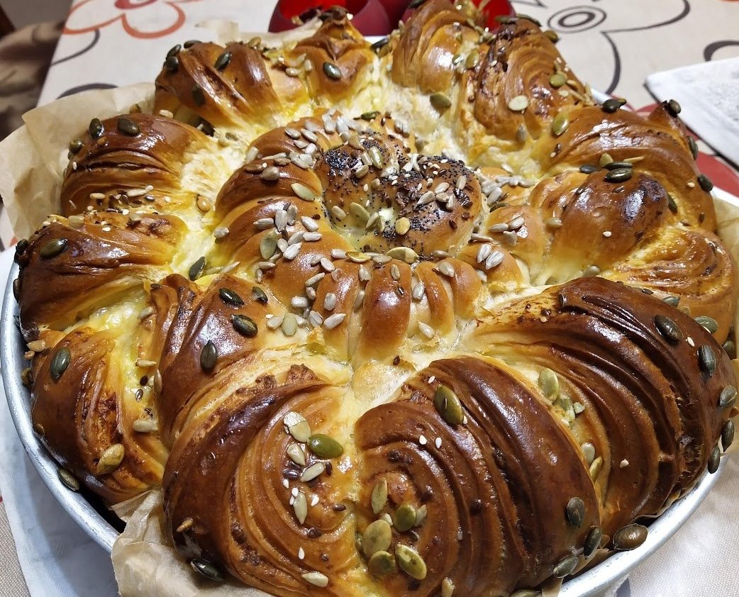 Рецептата за пълнозърнест хляб включва съставки като вода, масло, пълнозърнесто пшенично брашно, кафява захар, сол и суха мая. Програмите за приготвяне варират в зависимост от модела на машината; обикновено се избира програма за пълнозърнест хляб и се регулира степента на препичане и теглото. Рецептата за лучен хляб включва пълнозърнесто брашно, ръжено брашно, вода, сол, олио, задушен лук и мая. Сместа се оставя да втаса и след това се пече. Рецептата получи положителни отзиви, като се отбелязва лекият вкус на лук. Рецептата за хляб по рецепта за козунак включва топло мляко, яйца, масло, сол, брашно, захар и мая. Тестото се меси и пече на програма за сладък хляб. Рецептата за хляб с царевично брашно и босилeк включва вода, олио, сол, мая, захар, босилeк и царевично брашно. Тестото се меси и пече на бърза програма. Рецептата за пълнозърнест хляб включва брашно от люцерна, прясно мляко, вода, пълнозърнесто брашно, семена и зърна (ленно семе, тиквено семе, слънчогледово семе, елда и кафяв ориз), мая, масло, сол и кафява захар. Тестото се меси и пече на програма за пълнозърнест хляб. Рецептата за царевичен хляб включва 450 грама брашно от бяло пшенично брашно, 225 грама пълнозърнесто царевично брашно, 250 ml хладка вода, 150 ml топло прясно мляко, 2 супени лъжици зехтин, половин чаена лъжичка сол и една чаена лъжичка захар. Разтваря се сухата мая в топло прясно мляко и след това се добавят останалите течни съставки, брашното и солта. Тестото се меси и оформя, след което се пече на 180 градуса до готовност. Рецептата за ръжен хляб с пшенично брашно включва 8 г прясна мая, 255 г бял брашно, 255 г ръжен брашно, 2 супени лъжици олио, 1 супенa лъжица захар, 1 и половина чаени лъжички сол, 1 чаена лъжичка ябълков оцет, 200 ml кисело мляко и 170 ml вода. Програмата за приготвяне е на ръжен хляб при Panasonic за 3:30 часа. Рецептата за царевично-пшеничен хляб с мая включва 300 ml вода, 1 2/3 ч.л. сол, 1 супенa лъжица захар, 3-4 супени лъжици олио/мазнина, 1 яйце, 1/5 кубче прясна мая, 2 супени лъжици сушени зеленчуци или слънчоглед, 350 г бяло брашно и 150 г царевично брашно. Процесът включва разтваряне на маята в топла вода със захар, смесване на царевичното брашно с вряща вода и сол, последвано от добавяне на олио, яйце, маята, кашата, брашното и при необходимост грис. След изпичане хлябът се залива с вода и се разбива до гладка каша. Рецептата за ръжен хляб с квас от ръж и пшеница включва 700 ml вода, 1,5 супени лъжици захар, 3 чаени лъжички сол, 4 супени лъжици зехтин, 780 g ръжен брашно, 164 g квас от ръжен хляб (квас), 1,5 супени лъжици овесени трици, 1 чаена лъжичка печена смляна ръж и 1 чаена лъжичка печена смляна леблебия. Процесът включва месене на тестото в машината за хляб, втасване и печене във фурната. За да направите хляб от лимец, можете да използвате следната рецепта: смесете брашното, водата, млякото, солта, захарта, маслото и сухата мая. Оформете тестото и го изпечете в хлебопекарна на програмата за пълнозърнест хляб за около 3 часа и 40 минути.