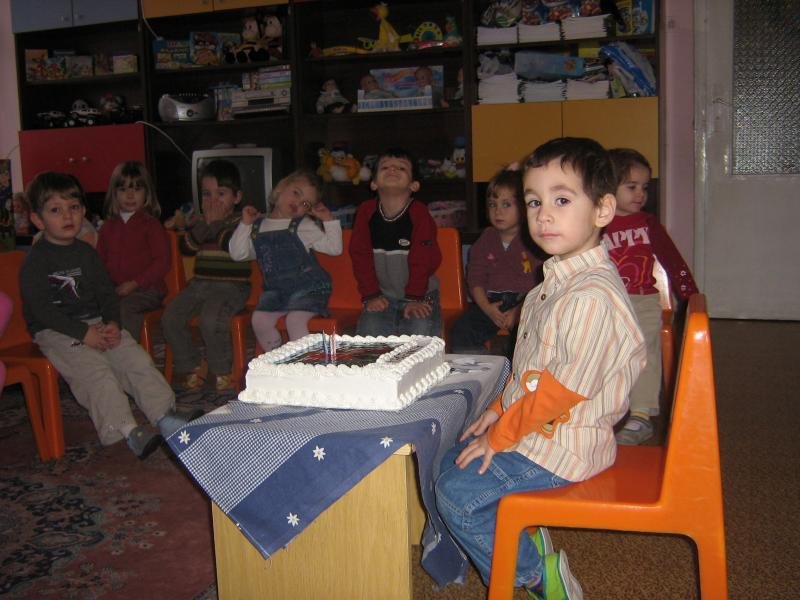 такаа, нашето парти в градината е било супер, по случайност същия ден е била планирана и снежна дискотека и Снежанка  е била на партито на Боби, така че е станало много светско парти. Имаме много подаръци, най различни, аз се радвам най много на книжките и се уверявам, че най - добре е винаги да купувам книжка , ако ми е ограничен бюджета. В къщи направихме домашна торта прилагам снимков материал, но духнахме свещичките късно, защото тате беше на работа до 9.
