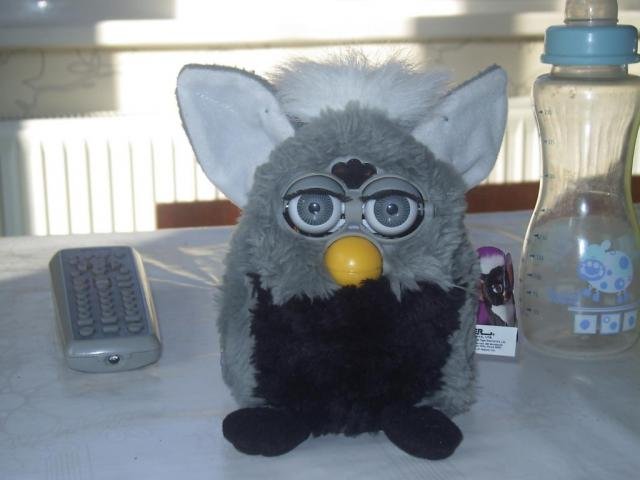 Не съм визала да пиша вчера, защото Тони е комадирован при баба и дядо, заедно с Фърби , и аз цял ден се помотвам, чистя като лиса с опашката си и....абе така де, разбрахте ме. Фърби значи няма богат репертоар от думи и говорене+пеене, но пък маха с уши, мига с очи и човката му "говори", а и се клати напред-назад като си пее "тра-ла-ла!