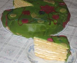 От доста руски сайтове изкомбинирах и така мисля,че става сполучлива рецептата. За вкус слагам малко лимонов сок в сметаната,орехи задължително отгоре и някакво кисело сладко по средата между блатовете./от кайсий,портокали или малини. Става прекрасно. Тия дни ще правя и ще кача снимка Simple Smile