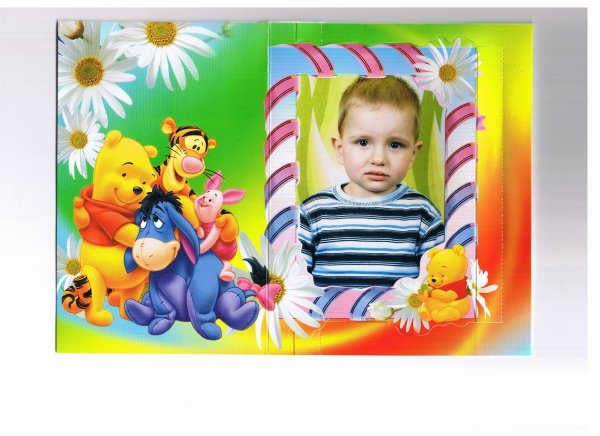Момичета, вижте, каква картичка ми подари моят "калинко" вчера на тържеството  Simple Smile Малко е все едно ще ревне, ама той винаги е така като го снимат в яслата  Grinning