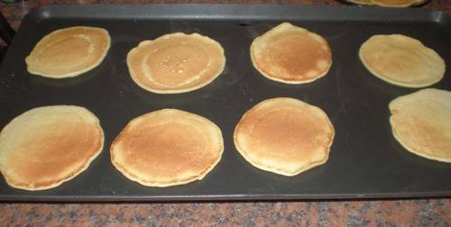 Рецептата за американски палачинки включва брашно, бакпулвер, сол, захар, яйца, прясно мляко и разтопено масло. Първо смесете сухите съставки и след това добавете разбитите яйца, топло мляко и масло. Смесете добре тестото и изсипете по 2 супени лъжици в предварително загрят тиган с незалепващо покритие без мазнина. Печете палачинките, докато се образуват мехурчета от едната страна, след което ги обърнете и продължете да печете до готовност.
