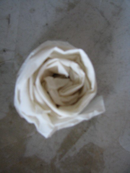 4. Повтаряме нагъването със следващата кора и завиваме около охлювчето. И така докато тавата се запълни. завиването не рябва да е стегнато, а съвсем свободно и небрежно, да има малко разстояние и въздух около отделните кори.